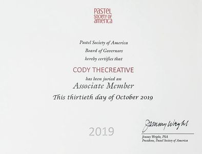 In October, 2019 Cody is accepted as an Associate Member of the Pastel Society of America